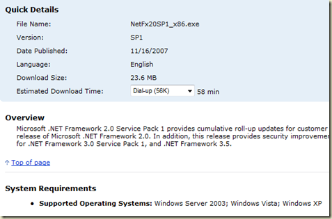 I have download Microsoft .NET Framework 2.0 Service Pack 1 (x86).